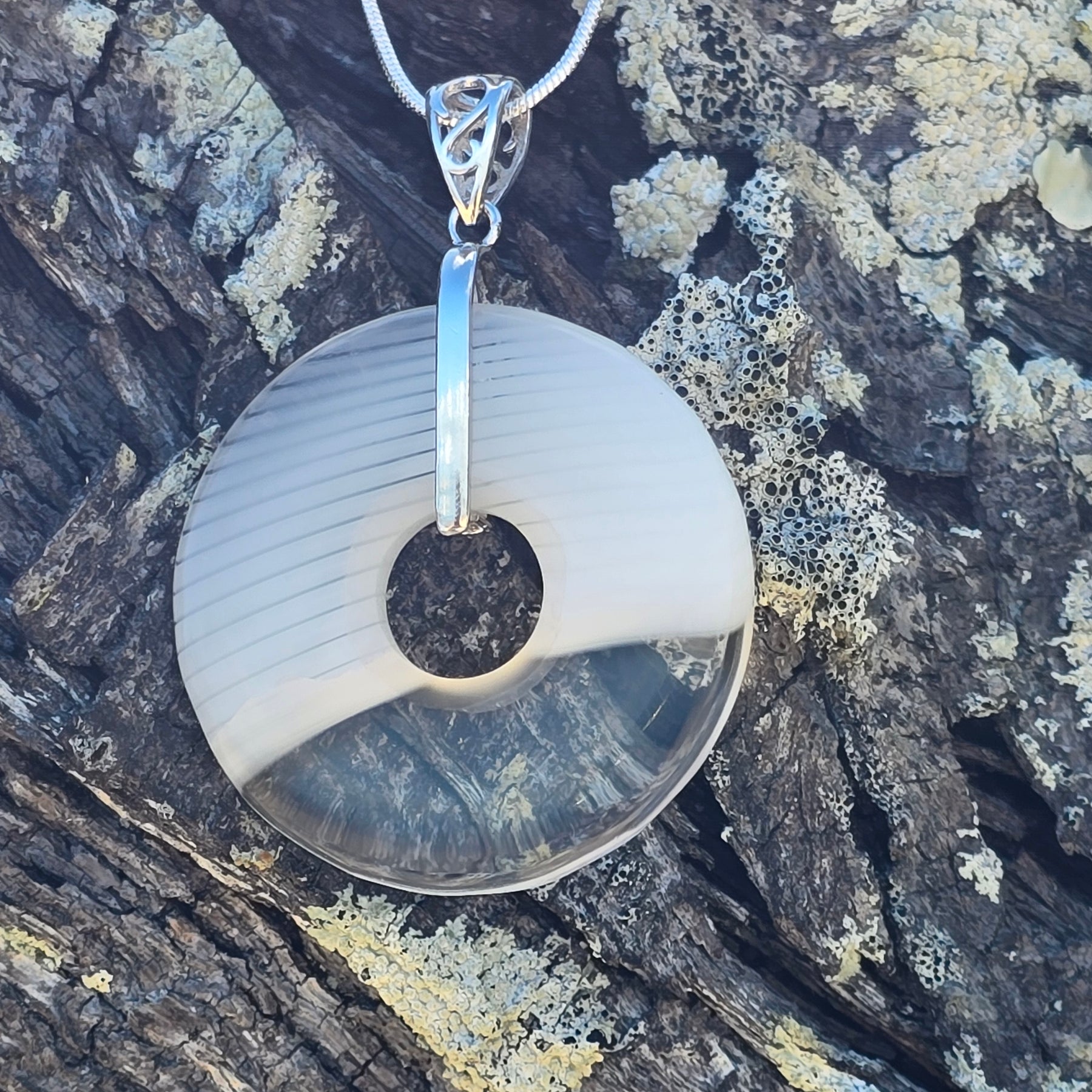 These handmade Andara Light Body Activators, ranging from 20-25 grams with a diameter of 3.5-4cm, are charged using Tesla's Scalar Energy to enhance the Torus field energy within us. They boost energy, support health, and counteract environmental toxins. Scalar energy promotes cell regeneration, detoxification, immunity, and pain relief. The Andara material allows these pendants to project positive light fields extensively.
