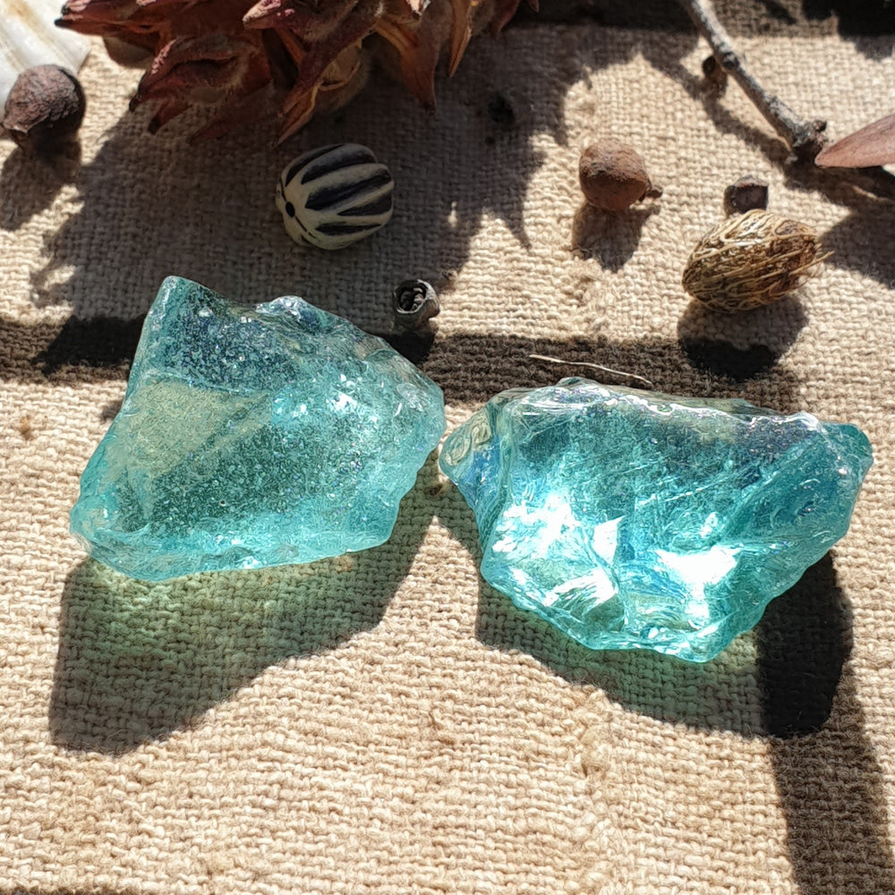 Intended to be worked with as a duo, these Andaras offer unique insights when meditated upon, with the seafoam variant in the left (receiving) hand and the clear aqua in the right hand. In this union, the Seafoam Elder imparts grounded knowledge and wisdom, while the clear Aqua Andara envelops you in gentle, tranquil water energy, reminiscent of a peaceful wave lapping at the shore.