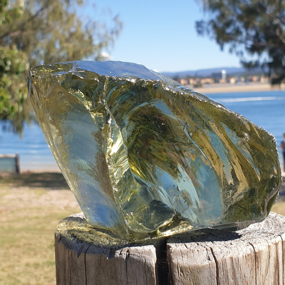 Even though they are almost colourless, with a hint of champagne shine, they magnify whatever energy is focused through them. In some lights they can change from the Champagne, through to Olive Green, and many have Etherium surface rainbows.