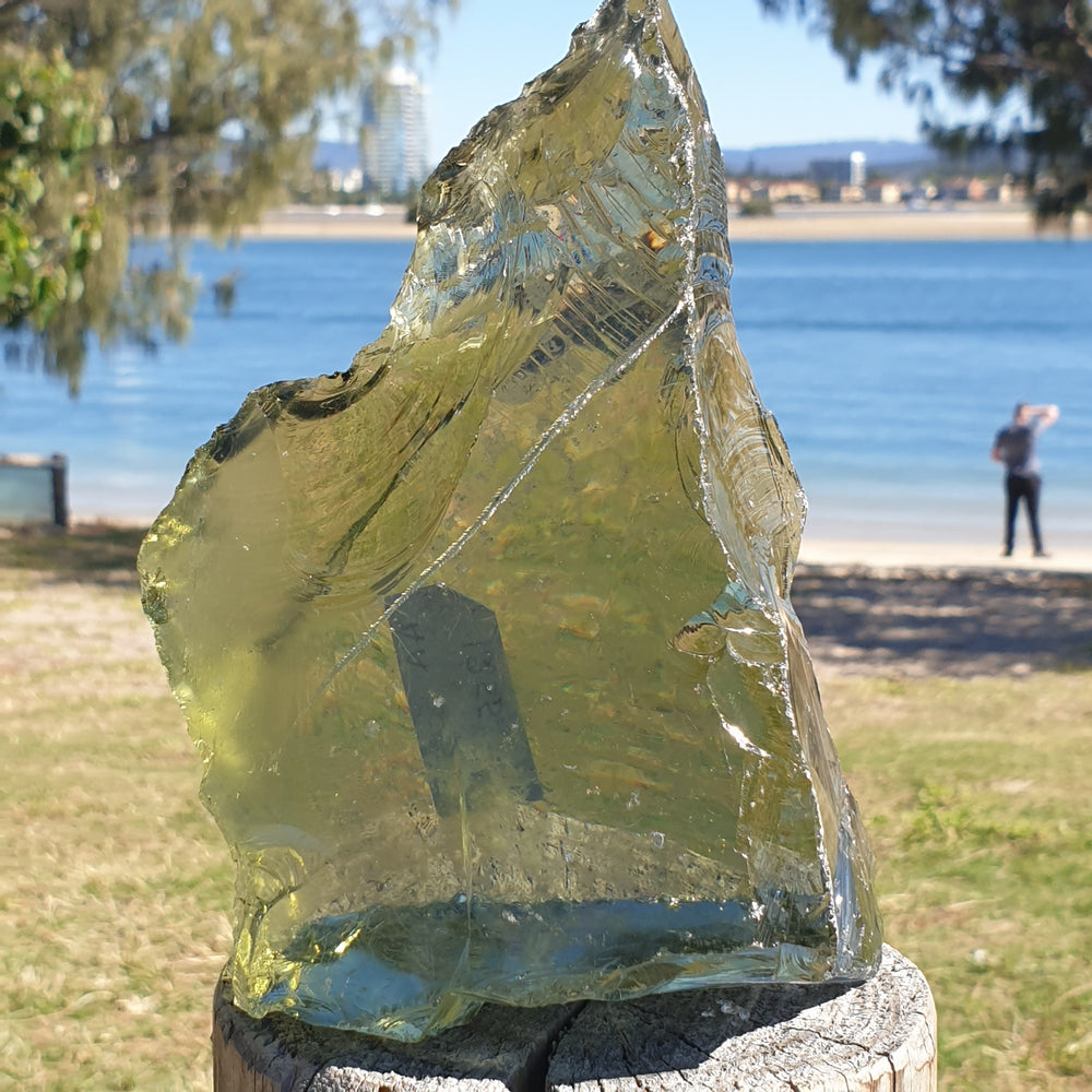 Even though they are almost colourless, with a hint of champagne shine, they magnify whatever energy is focused through them. In some lights they can change from the Champagne, through to Olive Green, and many have Etherium surface rainbows.