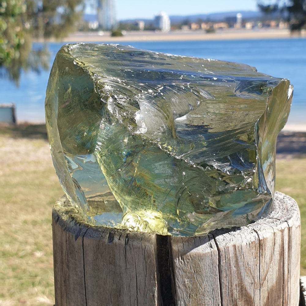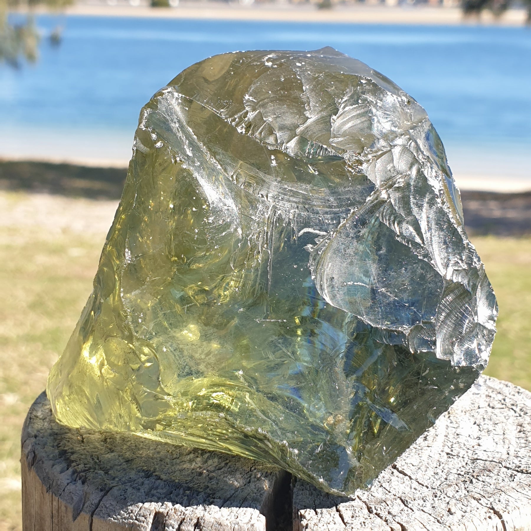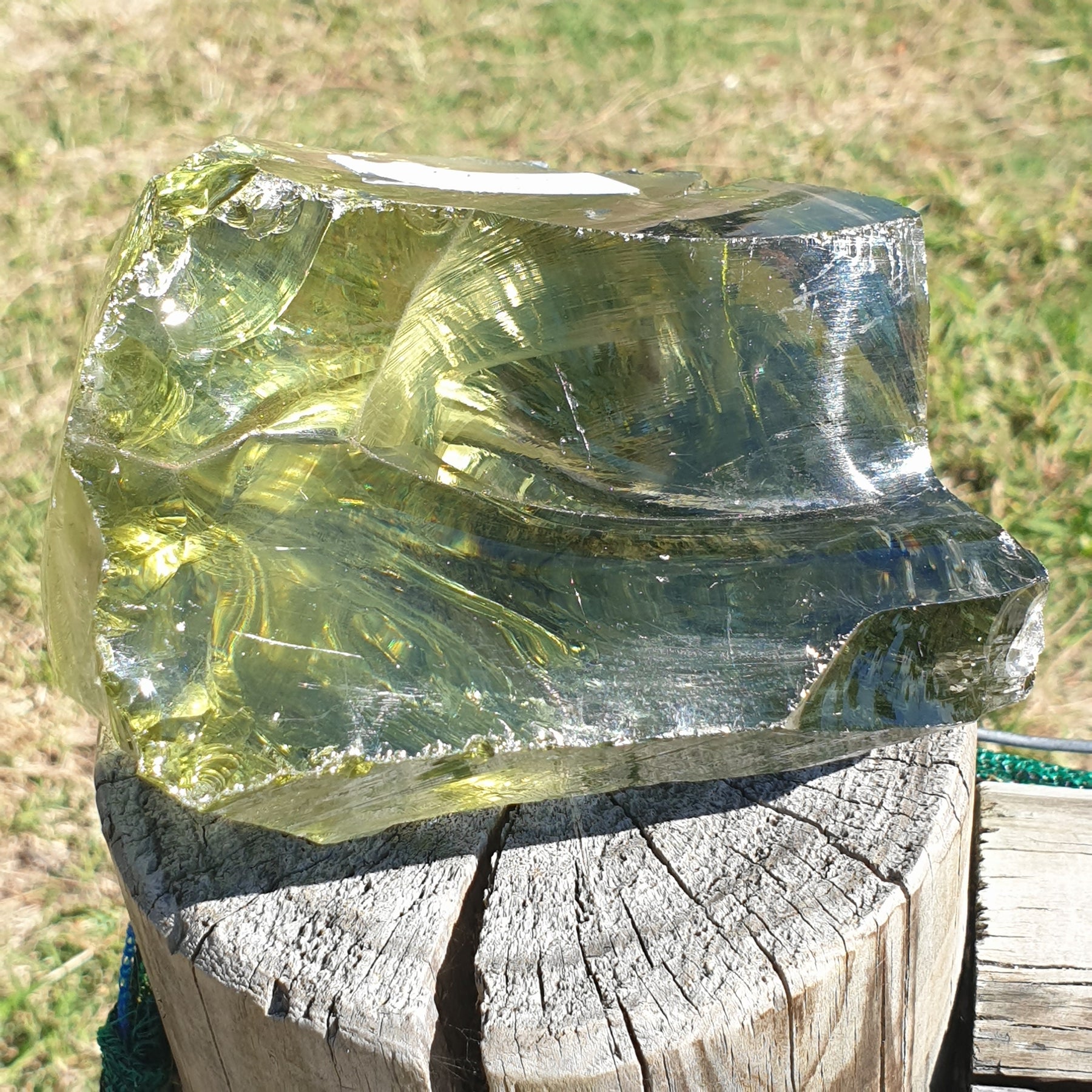 Even though they are almost colourless, with a hint of champagne shine, they magnify whatever energy is focused through them. In some lights they can change from the Champagne, through to Olive Green, and many have Etherium surface rainbows.