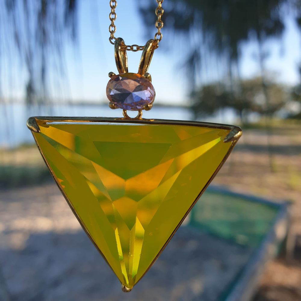 Pendant is set-in Gold-Plated Sterling Silver, and measures 3.5cm x 4.5cm